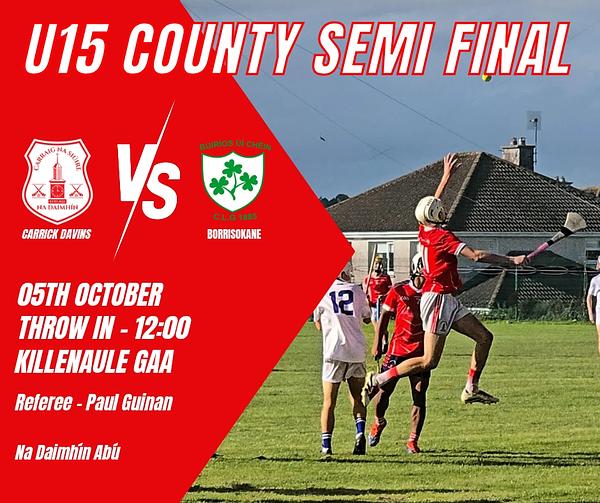 This Saturday our U15s step onto the big stage as they face Borrisokane for a place in the County Semi Final. The effort put in by this group all year has been immense.